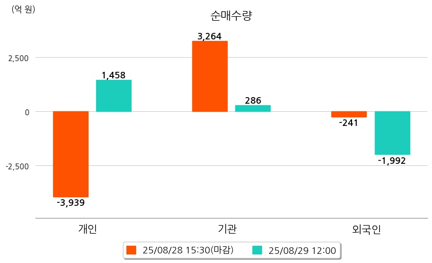 투자자별 동향을 살펴보면 기관은 286억 원 순매수했으며, 외국인은 1,992억 원 순매도했다. 개인은 1,458억 원 순매수했다.