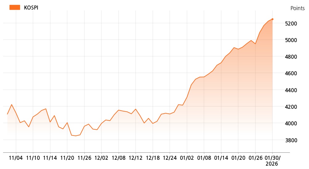 30일 정오 현재 코스피(5,248.27p, 27.02p, +0.52%)는 개인 매수가 늘면서 상승세를 보이고 있다.