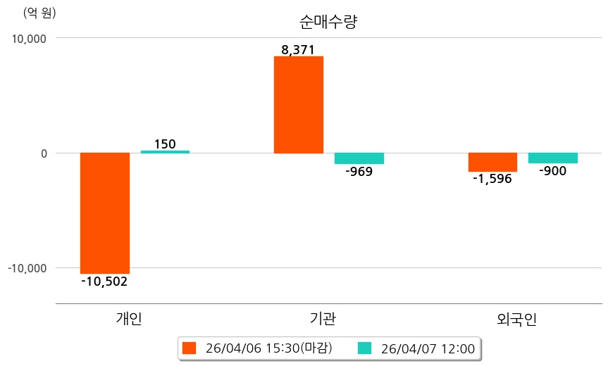 투자자별 동향을 살펴보면 기관은 969억 원 순매도했으며, 외국인은 900억 원 순매도했다. 개인은 150억 원 순매수했다.