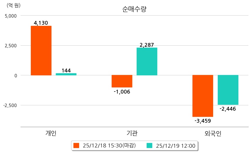 투자자별 동향을 살펴보면 기관은 2,287억 원 순매수했으며, 외국인은 2,446억 원 순매도했다. 개인은 144억 원 순매수했다.