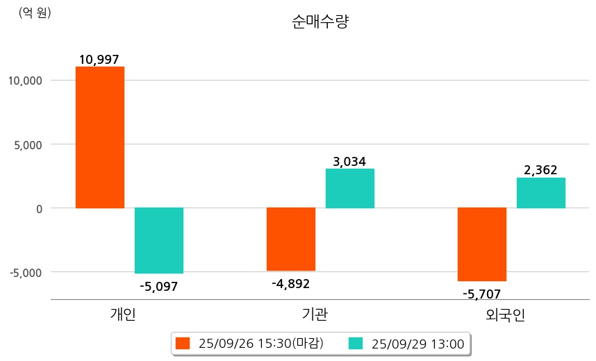 투자자별 동향을 살펴보면 기관은 3,034억 원 순매수했으며, 외국인은 2,362억 원 순매수했다. 개인은 5,097억 원 순매도했다.