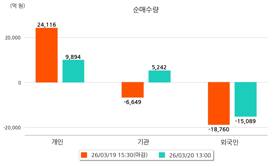 투자자별 동향을 살펴보면 기관은 5,242억 원 순매수했으며, 외국인은 15,089억 원 순매도했다. 개인은 9,894억 원 순매수했다.
