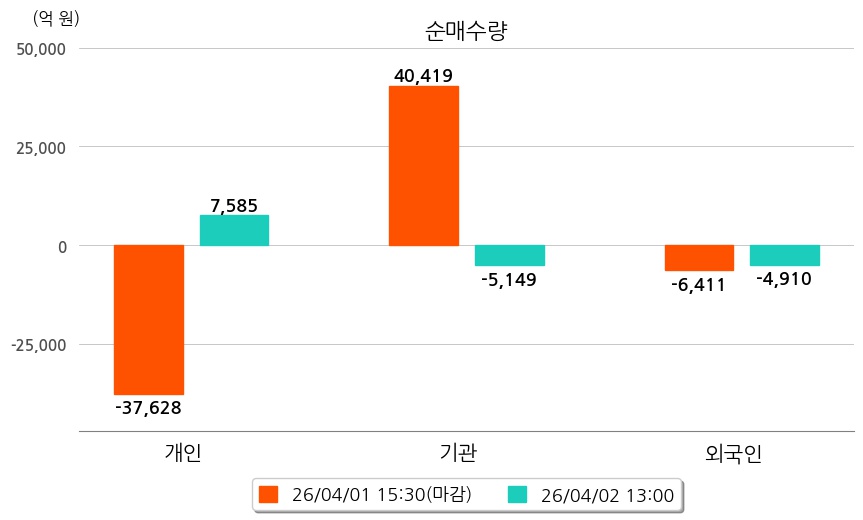 투자자별 동향을 살펴보면 기관은 5,149억 원 순매도했으며, 외국인은 4,910억 원 순매도했다. 개인은 7,585억 원 순매수했다.
