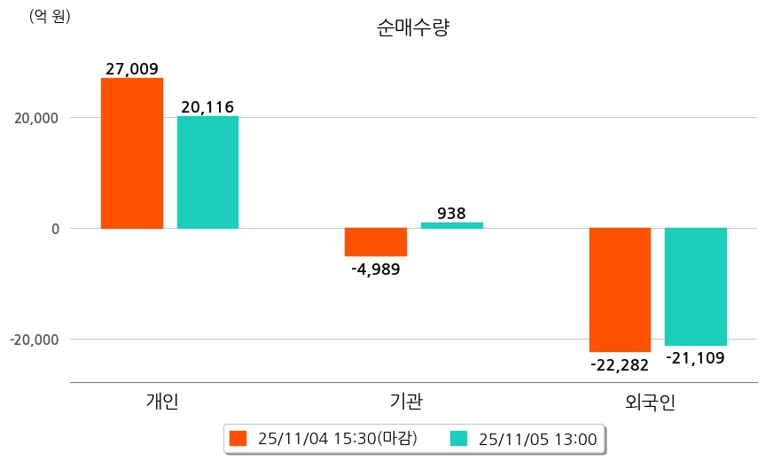 투자자별 동향을 살펴보면 기관은 938억 원 순매수했으며, 외국인은 21,109억 원 순매도했다. 개인은 20,116억 원 순매수했다.