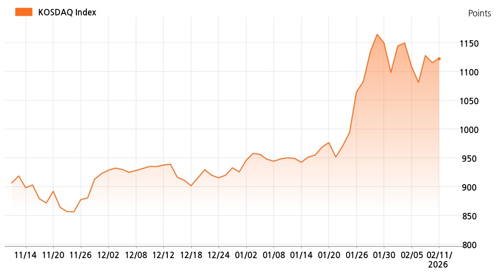 11일 오후 1시 코스닥(1,122.68p, 7.48p, +0.67%)는 기관 매수가 늘면서 상승세를 보이고 있다.