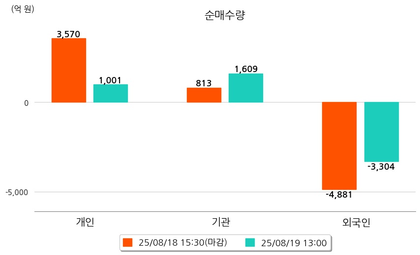 투자자별 동향을 살펴보면 기관은 1,609억 원 순매수했으며, 외국인은 3,304억 원 순매도했다. 개인은 1,001억 원 순매수했다.