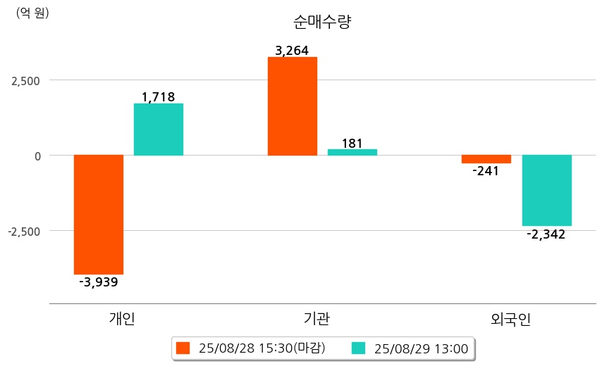투자자별 동향을 살펴보면 기관은 181억 원 순매수했으며, 외국인은 2,342억 원 순매도했다. 개인은 1,718억 원 순매수했다.