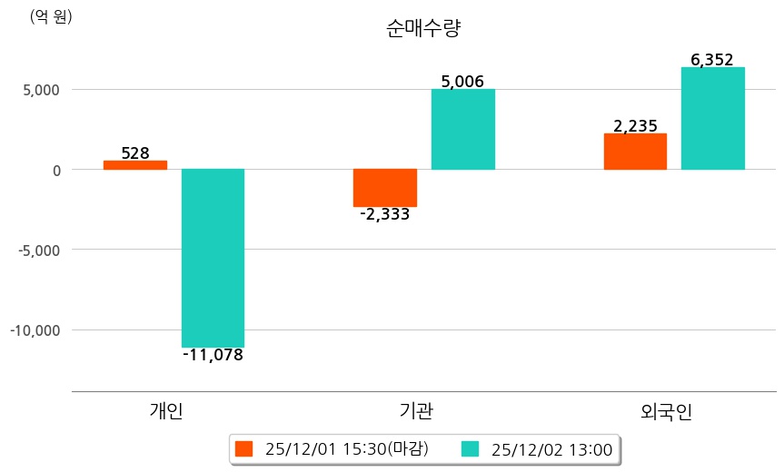 투자자별 동향을 살펴보면 기관은 5,006억 원 순매수했으며, 외국인은 6,352억 원 순매수했다. 개인은 11,078억 원 순매도했다.