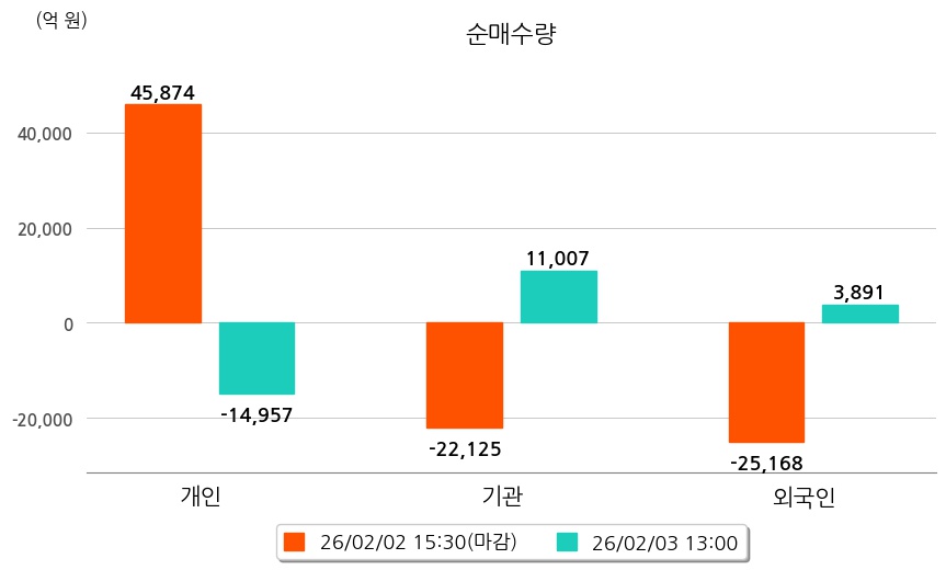 투자자별 동향을 살펴보면 기관은 11,007억 원 순매수했으며, 외국인은 3,891억 원 순매수했다. 개인은 14,957억 원 순매도했다.