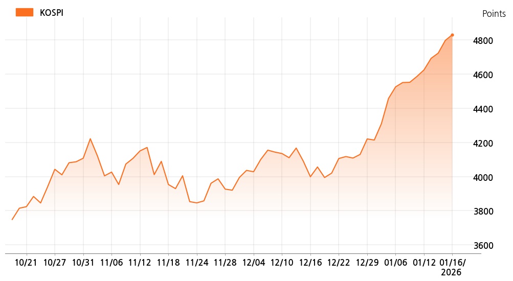 16일 오후 2시 코스피(4,831.49p, 33.94p, +0.71%)는 기관 매수가 늘면서 상승세를 보이고 있다.