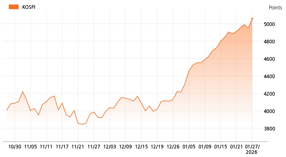 27일 오후 2시 코스피(5,059.75p, 110.16p, +2.23%)는 외국인 매수가 늘면서 상승세를 보이고 있다.