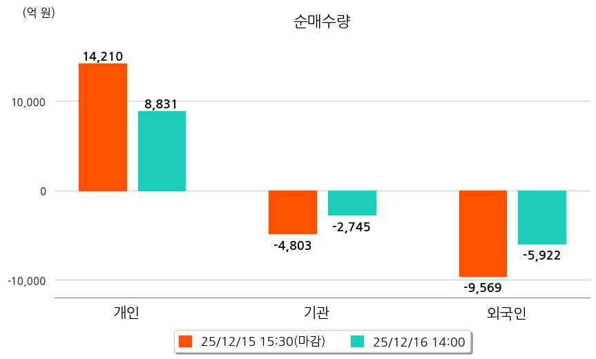 투자자별 동향을 살펴보면 기관은 2,745억 원 순매도했으며, 외국인은 5,922억 원 순매도했다. 개인은 8,831억 원 순매수했다.