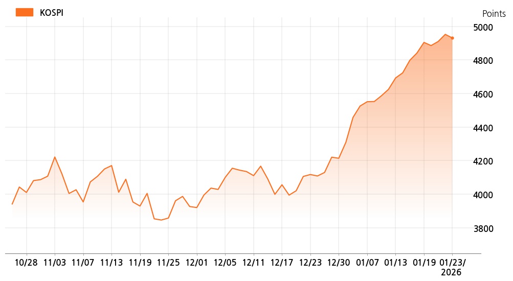23일 오후 2시 코스피(4,930.84p, 21.69p, -0.44%)는 개인 매도가 늘면서 하락세를 보이고 있다.