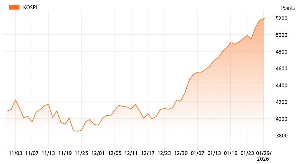29일 오후 2시 코스피(5,190.63p, 19.82p, +0.38%)는 개인 매수가 늘면서 상승세를 보이고 있다.