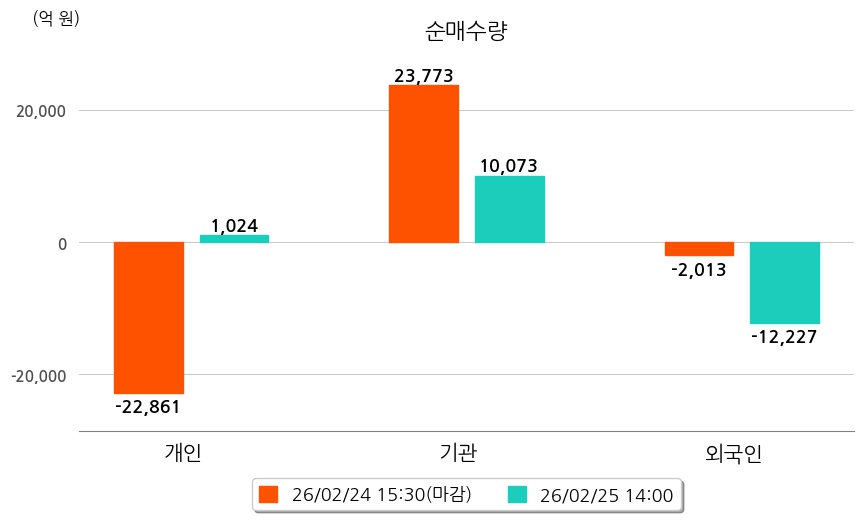 투자자별 동향을 살펴보면 기관은 10,073억 원 순매수했으며, 외국인은 12,227억 원 순매도했다. 개인은 1,024억 원 순매수했다.