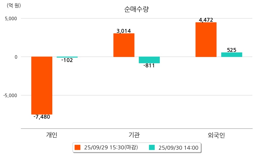 투자자별 동향을 살펴보면 기관은 811억 원 순매도했으며, 외국인은 525억 원 순매수했다. 개인은 102억 원 순매도했다.