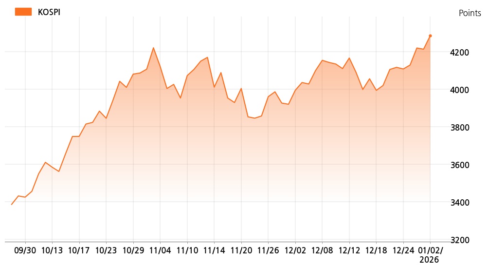 2일 오후 2시 코스피(4,287.21p, 73.04p, +1.73%)는 외국인 매수가 늘면서 상승세를 보이고 있다.
