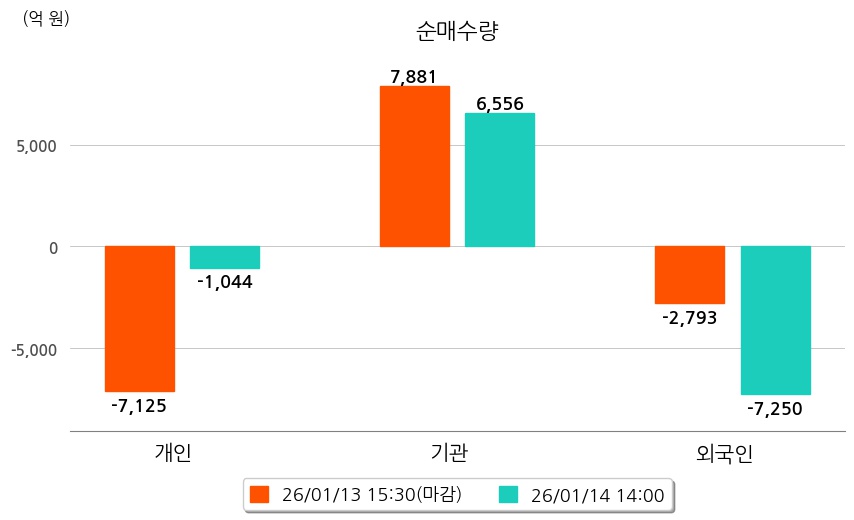 투자자별 동향을 살펴보면 기관은 6,556억 원 순매수했으며, 외국인은 7,250억 원 순매도했다. 개인은 1,044억 원 순매도했다.