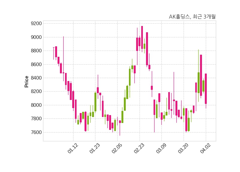 AK홀딩스는 특별관계자 채형석의 지분율이 65.22%에서 65.24%로 변동했다고 02일 공시했다. 한편, AK홀딩스의 15시 20분 현재주가는 8,020원으로 직전 거래일 대비 340원(-4.07%) 하락이며, 거래량은 9,386주이다.