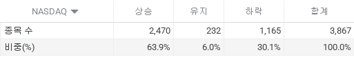 – NASDAQ 상승종목 : 전체 3867개 중 2470개 (63.9%)