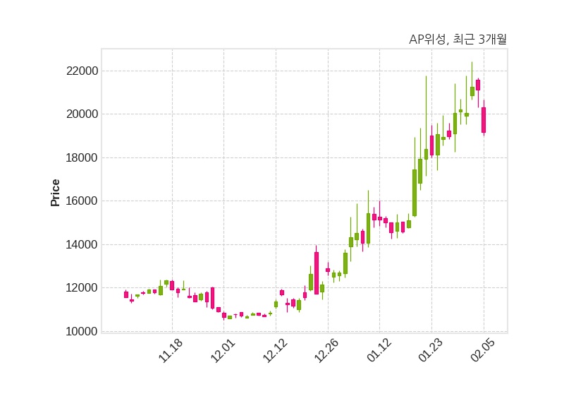 한편, AP위성은 장 마감 이후 해당 기업공시를 발표했으며 오늘 종가가 19,150원, 거래량은 730,450주로, 직전 거래일 대비 1,950원(-9.24%) 하락했다.