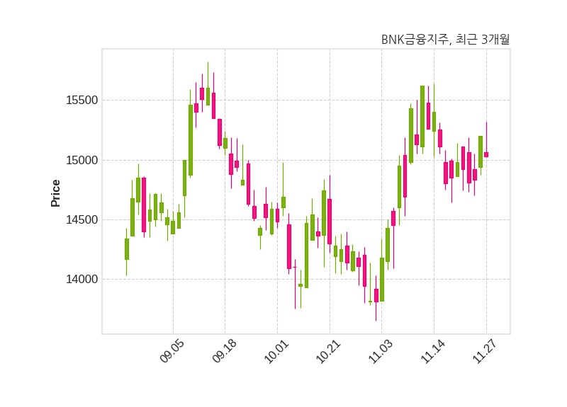 한편, BNK금융지주는 장 마감 이후 해당 기업공시를 발표했으며 오늘 종가가 15,030원, 거래량은 457,735주로, 직전 거래일 대비 170원(-1.12%) 하락했다.