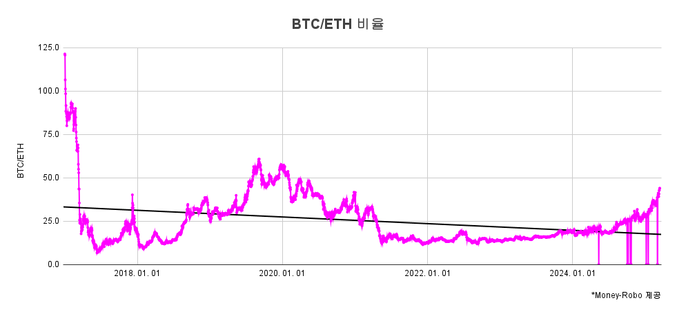 – BTC/ETH 비율 : 17.34 (전일 대비 0.25 하락)