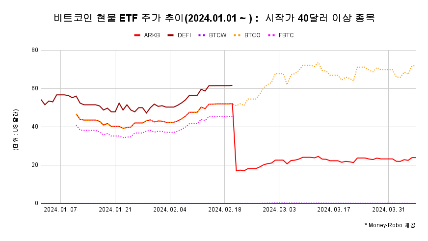 4. 미국 비트코인 현물 ETF 주가 추이