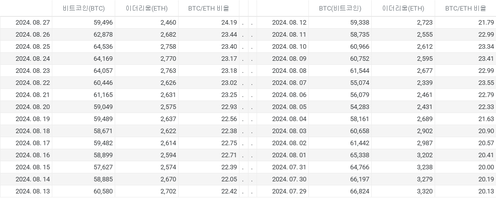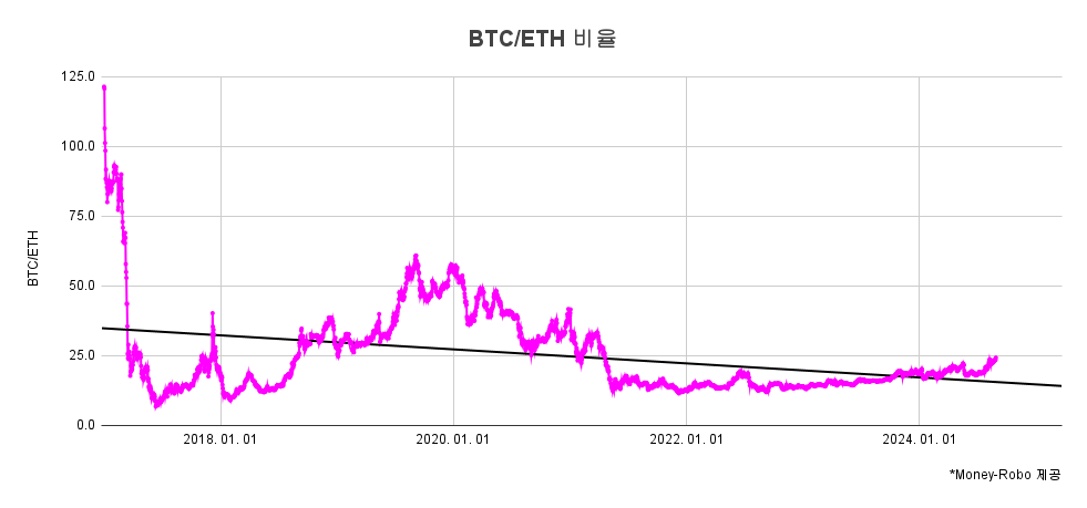 – BTC/ETH 비율 : 24.19 (전일 대비 0.741 상승)