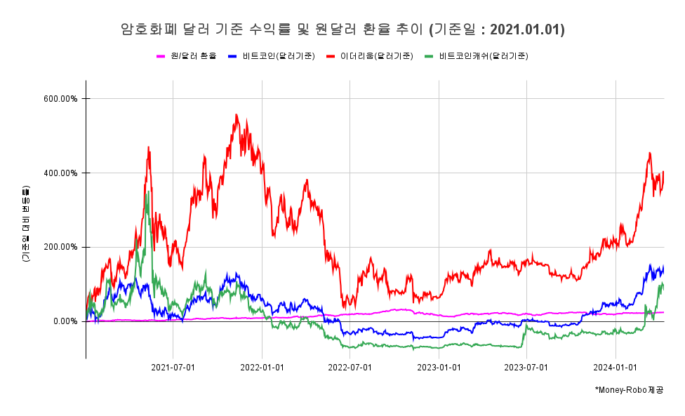 *종가는 현재일 23:59분 현재 종가이며, 일일 장마감 시간이 없는 암호화폐 시장 특성 상 현재일(t일) 직전 거래일(t-1일) 종가는 합산과정에서 소폭 변동 될 수 있습니다.