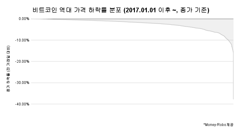 비트코인 역대 가격 하락률 순위(대한민국 원 기준)