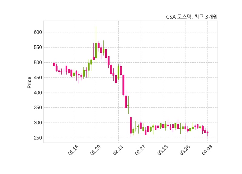 CSA 코스믹은 특별관계자 카노히의 지분율이 4.07%에서 7.08%로 변동했다고 08일 공시했다. 한편, CSA 코스믹의 13시 50분 현재주가는 267원으로 직전 거래일 대비 변동없으며, 거래량은 276,814주이다.