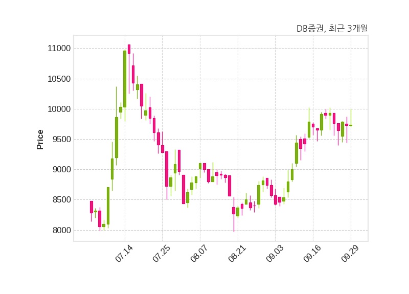 한편, DB증권은 장 마감 이후 해당 기업공시를 발표했으며 오늘 종가가 9,740원, 거래량은 104,911주로, 직전 거래일 대비 10원(+0.1%) 상승했다.
