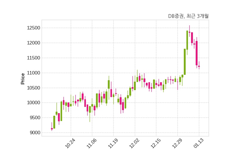 한편, DB증권은 장 마감 이후 해당 기업공시를 발표했으며 오늘 종가가 11,210원, 거래량은 65,588주로, 직전 거래일 대비 50원(-0.44%) 하락했다.