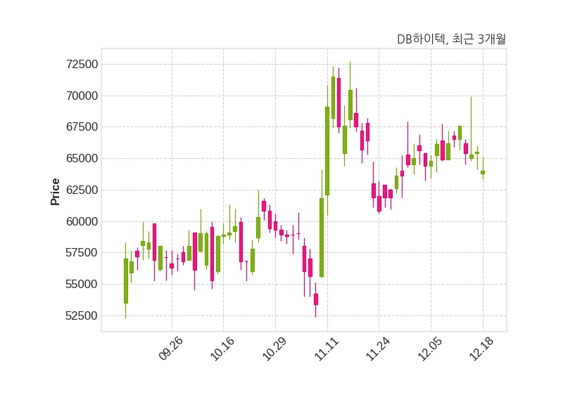 한편, DB하이텍은 장 마감 이후 해당 기업공시를 발표했으며 오늘 종가가 64,000원, 거래량은 300,184주로, 직전 거래일 대비 1,500원(-2.29%) 하락했다.