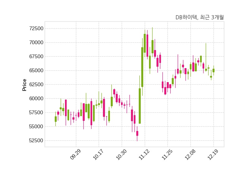 DB하이텍은 특별관계자 미래에셋자산운용의 지분율이 5.1%에서 4.83%로 변동했다고 19일 공시했다. 한편, DB하이텍은 장 마감 이후 해당 기업공시를 발표했으며 오늘 종가가 65,300원, 거래량은 321,634주로, 직전 거래일 대비 1,300원(+2.03%) 상승했다.