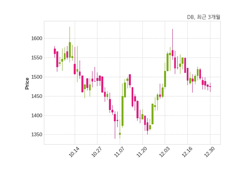 한편, DB은 장 마감 이후 해당 기업공시를 발표했으며 오늘 종가가 1,474원, 거래량은 236,364주로, 직전 거래일 대비 1원(-0.07%) 하락했다.