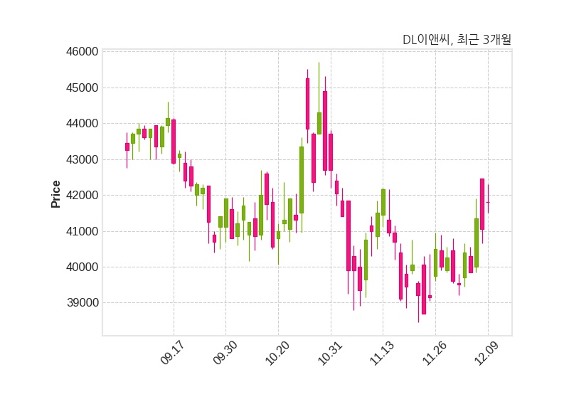 한편, DL이앤씨는 장 마감 이후 해당 기업공시를 발표했으며 오늘 종가가 41,800원, 거래량은 254,162주로, 직전 거래일 대비 750원(+1.83%) 상승했다.