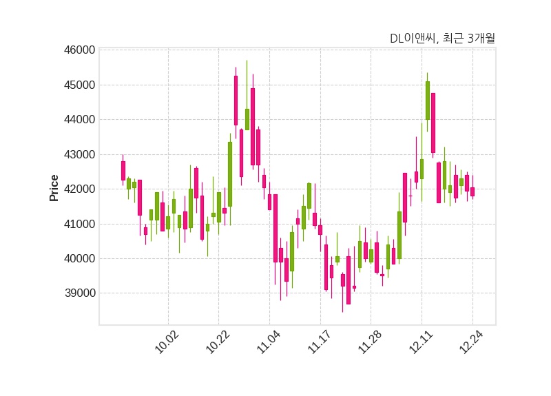한편, DL이앤씨는 장 마감 이후 해당 기업공시를 발표했으며 오늘 종가가 41,800원, 거래량은 114,756주로, 직전 거래일 대비 150원(-0.36%) 하락했다.