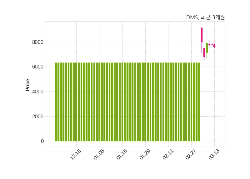 한편, DMS은 장 마감 이후 해당 기업공시를 발표했으며 오늘 종가가 7,620원, 거래량은 108,970주로, 직전 거래일 대비 200원(-2.56%) 하락했다.