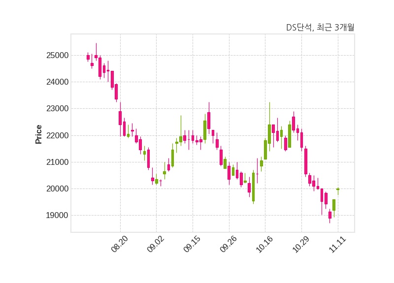 한편, DS단석의 09시 04분 현재주가는 20,000원으로 직전 거래일 대비 400원(+2.04%) 상승이며, 거래량은 4,445주이다.