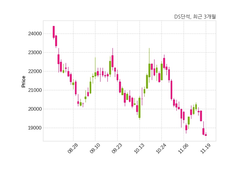 한편, DS단석의 09시 10분 현재주가는 18,590원으로 직전 거래일 대비 60원(-0.32%) 하락이며, 거래량은 4,495주이다.