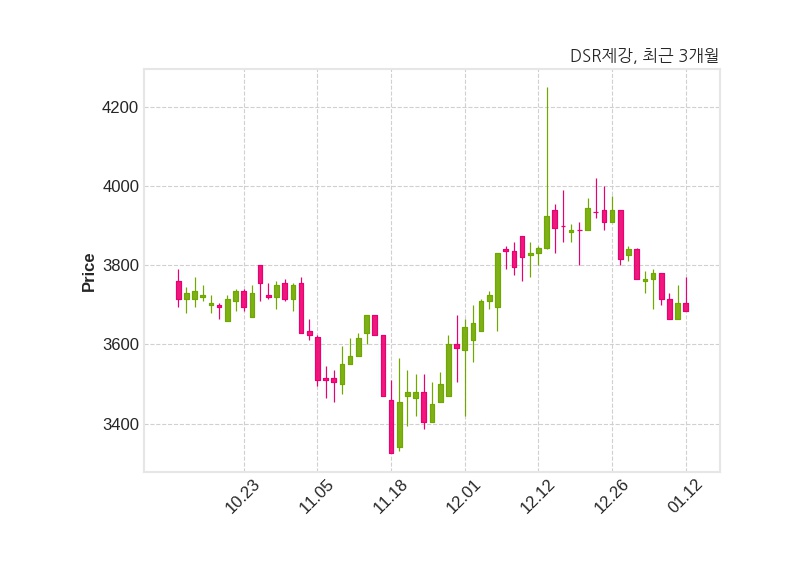 한편, DSR제강의 15시 28분 현재주가는 3,685원으로 직전 거래일 대비 20원(-0.54%) 하락이며, 거래량은 7,865주이다.
