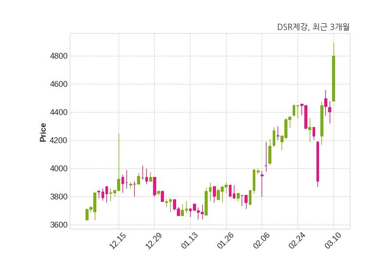 한편, DSR제강은 장 마감 이후 해당 기업공시를 발표했으며 오늘 종가가 4,800원, 거래량은 244,789주로, 직전 거래일 대비 395원(+8.97%) 상승했다.