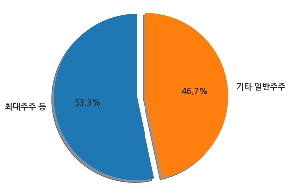 현재 최대주주 등 특별관계자의 소유주식은 총 7,680,591주로 발행주식 총수의 53.34%이다.