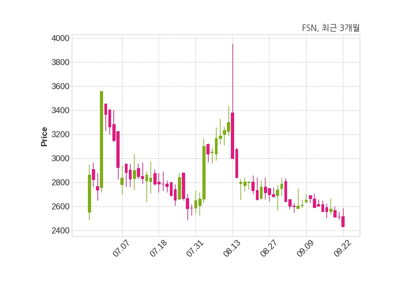 FSN은 특별관계자 제이투비의 지분율이 28.97%에서 29.1%로 변동했다고 22일 공시했다. 한편, FSN은 장 마감 이후 해당 기업공시를 발표했으며 오늘 종가가 2,435원, 거래량은 410,586주로, 직전 거래일 대비 80원(-3.18%) 하락했다.