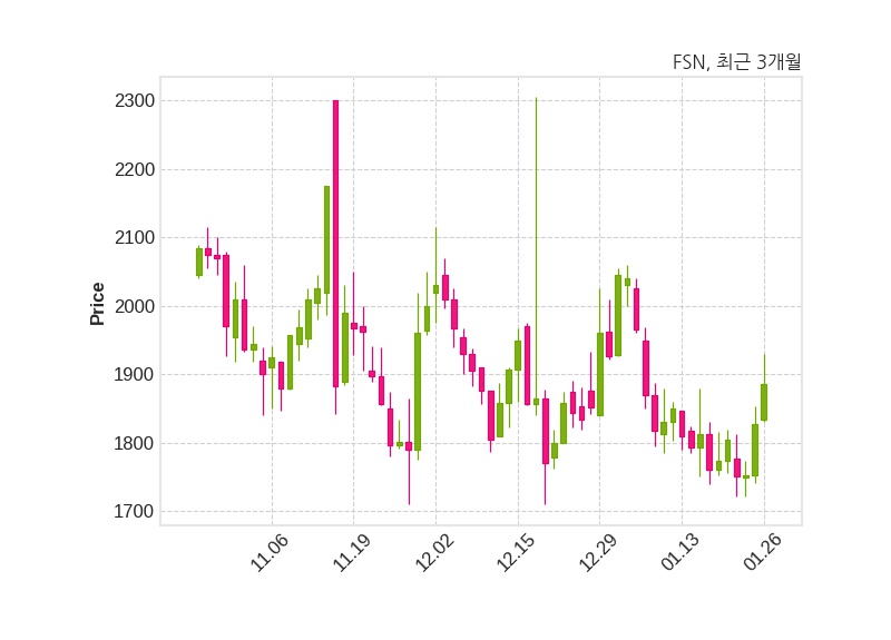 한편, FSN은 장 마감 이후 해당 기업공시를 발표했으며 오늘 종가가 1,886원, 거래량은 518,242주로, 직전 거래일 대비 58원(+3.17%) 상승했다.
