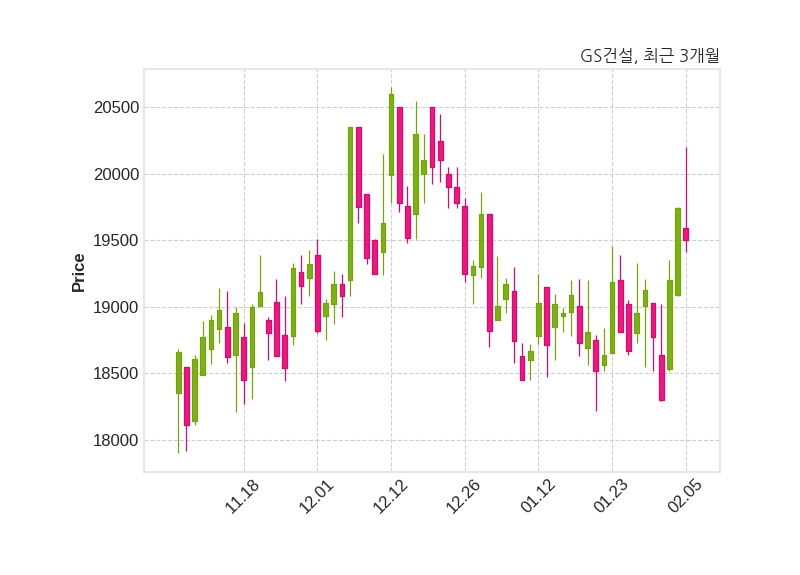 한편, GS건설의 14시 10분 현재주가는 19,500원으로 직전 거래일 대비 240원(-1.22%) 하락이며, 거래량은 617,612주이다.