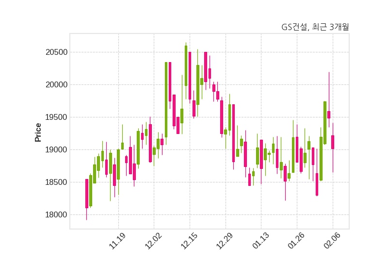 한편, GS건설의 15시 01분 현재주가는 19,020원으로 직전 거래일 대비 470원(-2.41%) 하락이며, 거래량은 850,147주이다.