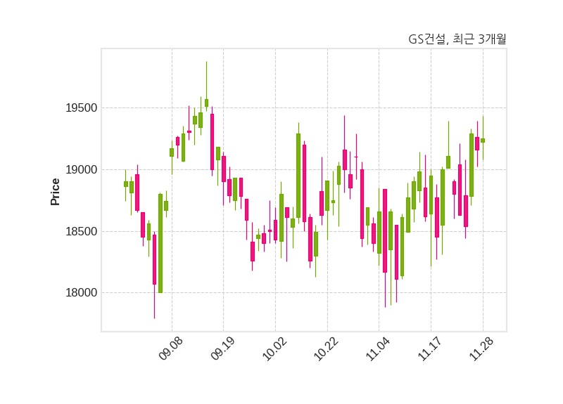 한편, GS건설의 13시 40분 현재주가는 19,250원으로 직전 거래일 대비 90원(+0.47%) 상승이며, 거래량은 173,593주이다.